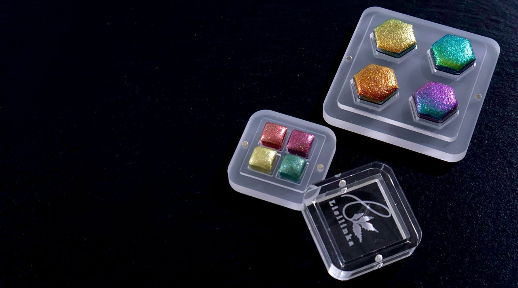 All metallic watercolors are fast to activate and the high opacity leads to easy handling with brushes and calligraphy nibs.