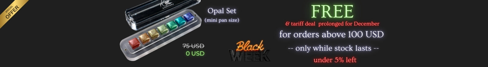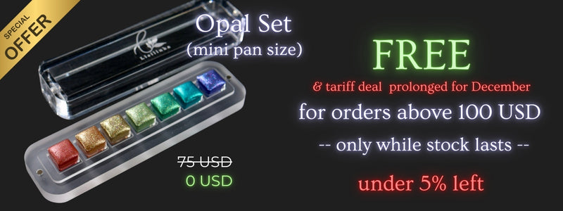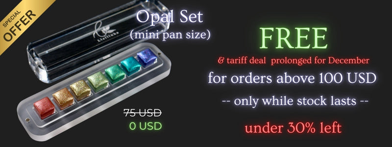 Combinations of special pigments create a variety of metallic watercolors with stunning sparkle. No fixation needed!